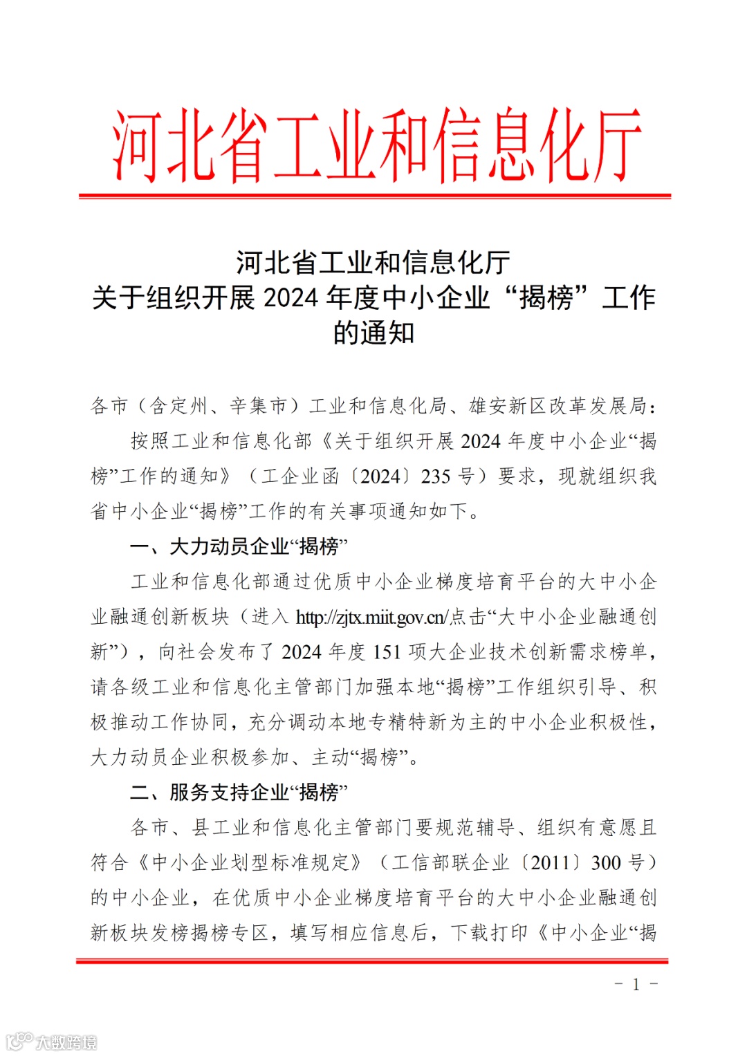 关于组织开展2024年度中小企业“揭榜”工作的通知