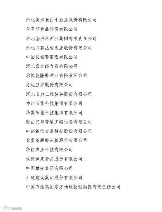 附件:首届河北品牌企业认定建议名单