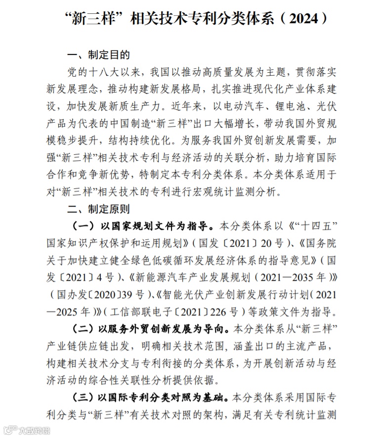 现将编制的《“新三样”相关技术专利分类体系(2024)》印发给你们,请结合实际在工作中参照使用。