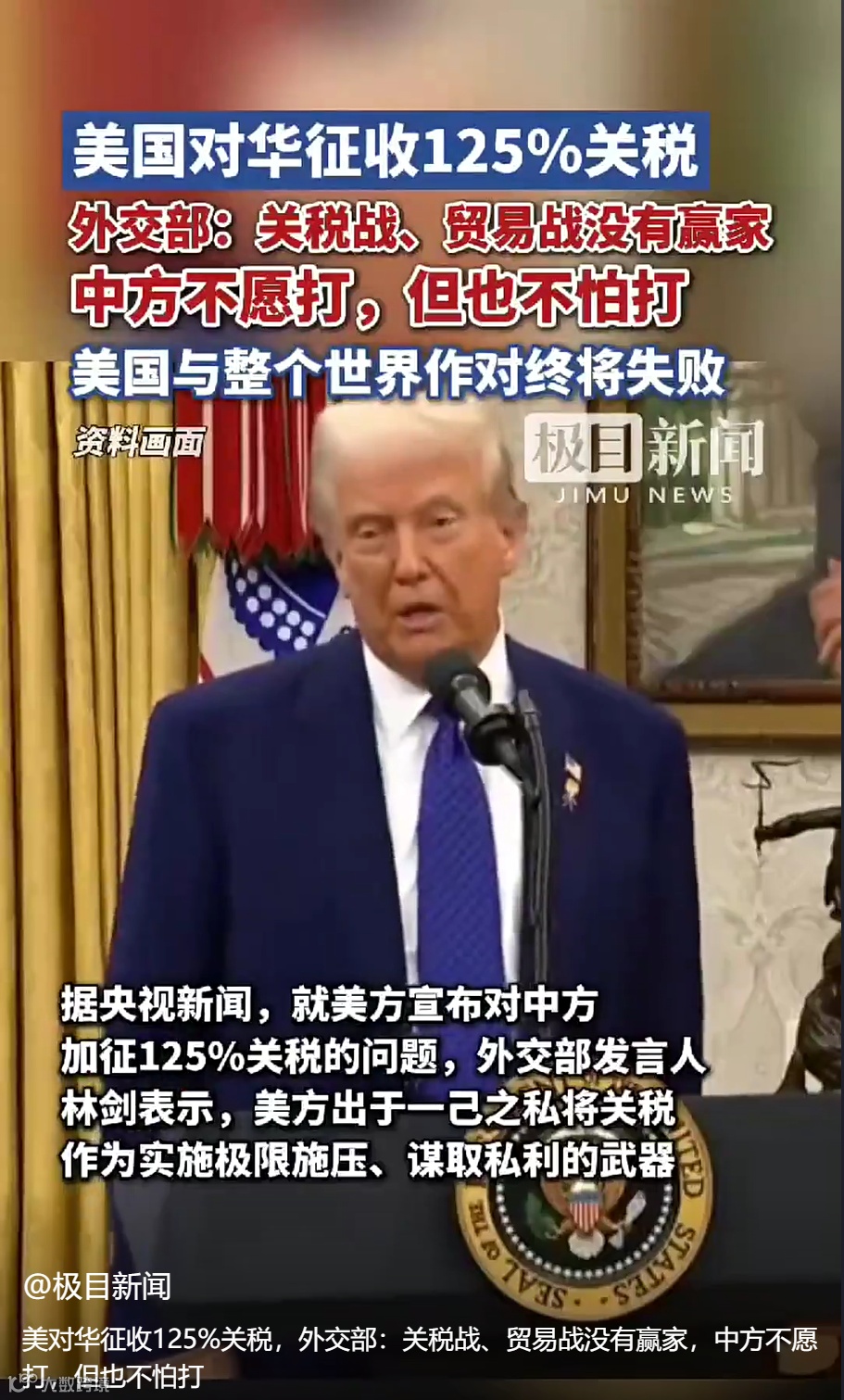 坚决反制!中方对原产于美国的进口商品再加征50%关税
