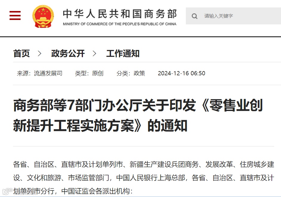 近日,商务部、国家发展改革委等七部委印发《零售业创新提升工程实施方案》,以促进零售业高质量发展。《方案》从场景改造、品质化供应、数字化赋能、多元化创新、供应链升级等多方面出发,为推动零售业创新提出实施细则。《方案》特别提到,鼓励服装等领域打造“生产+平台+消费者”的平台型供应链,开展“个性定制+柔性生产+及时物流”解决方案。