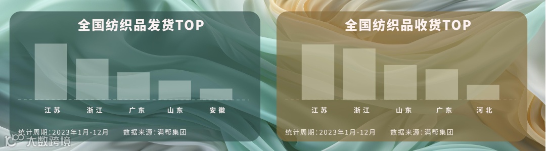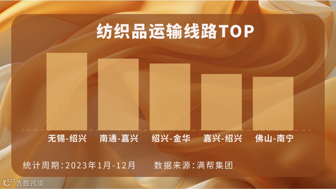 根据满帮货运数据,2023年1-12月,平台纺织品发货吨数同比上升7.2%。在平台上,从浙江
