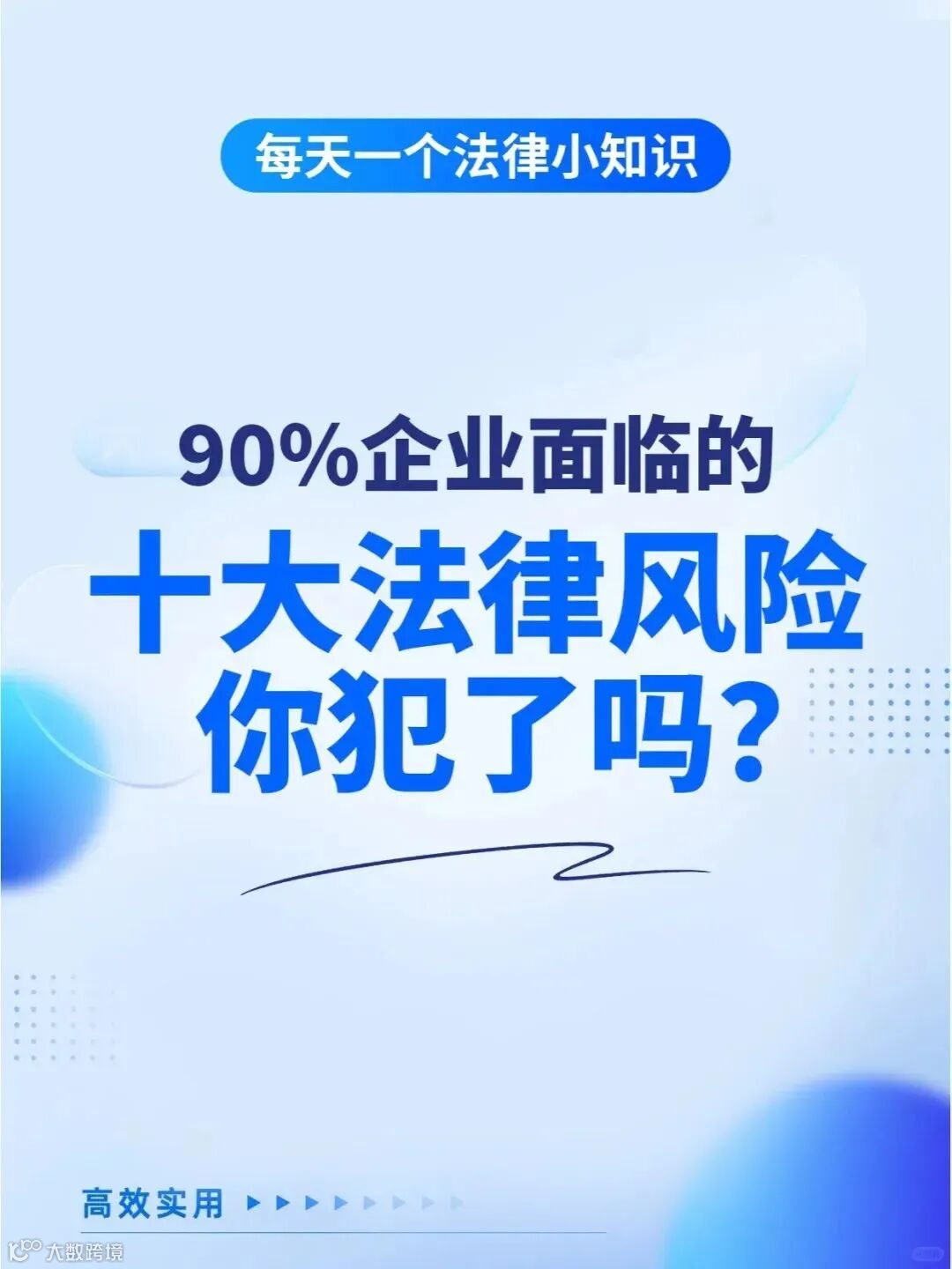 企业在日常的发展中通常会面临各种法律问题,这其中,90%的企业都会面临以下十种法律风险。