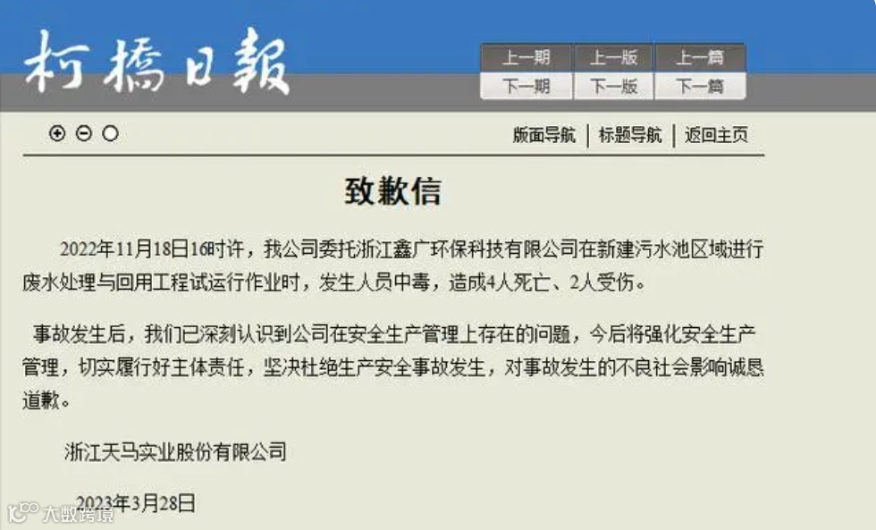 3月28日,浙江天马实业股份有限公司发布道歉信: