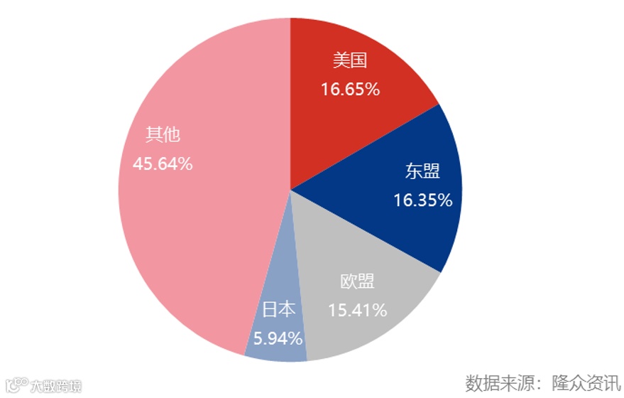 从出口增速来看,对东盟出口增速最高,其次则是美国和欧盟,分别在22.04%、18.36%和8.99%,而对日本出口则出现下滑,较2021年同期-7.21%。