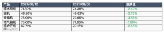 当前下游市场处于淡季,原料价格前期持续上涨导致下游企业接单困难,部分织造、印染企业因亏损而限产。近两周下游织造行情一度减弱,喷水、经编、圆机及喷气开机率均出现不同程度下降。同时据消息称,由于坯布库存高企,生产亏损,新订单稀少,苏北地区喷水织造近期停机增多,部分上千台机器规模的家纺面料企业停产或者大幅度减产。