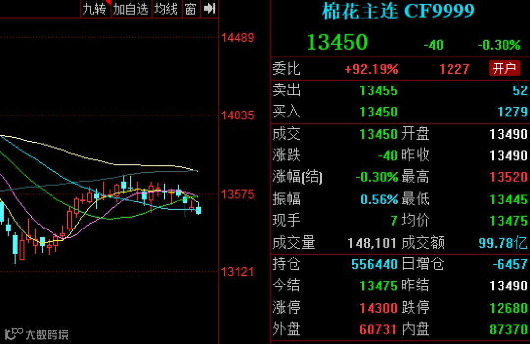 11月14日,郑棉主力合约报收于13450元/吨,跌40元/吨。郑棉国庆节后则开启了反弹行情,主力合约从近13200处最高于月底涨至13675元/吨。主要受买盘需求和收购价不断上移的助力,期间中美贸易形势紧张的利空影响有限。之后直至目前,郑棉主力1月合约则徘徊在13450元至13650元的窄幅区间内。