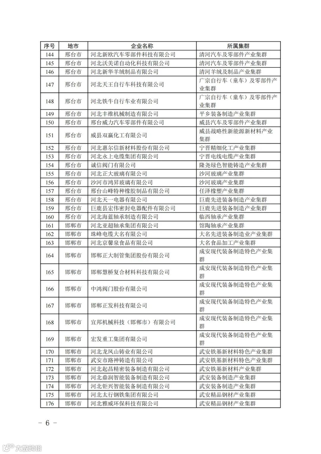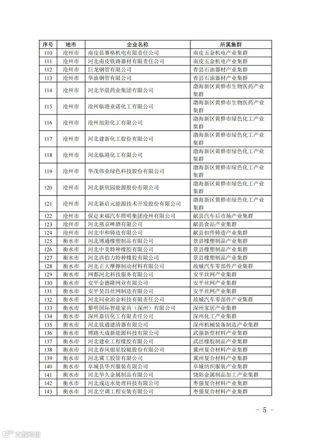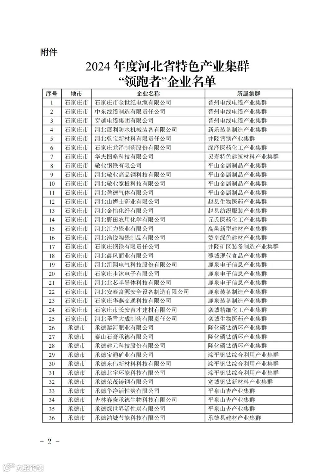 关于公布2024年度河北省特色产业集群“领跑者”企业名单的通知