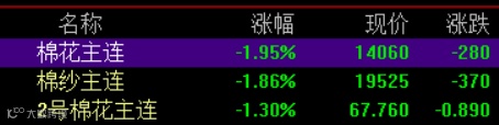 国信期货分析称,中国需求减少以及股市弱势打压棉价。市场预期美棉单产提高,据美国农业部,美棉优良率53%,较去年同期高7个百分点。短期美棉打破70美分左右支撑,技术图形转弱。郑棉夜盘走软,外盘回落带来拖累。国内短期基本面较弱。但棉纱库存有所下降,市场对于旺季存在预期。下方空间或有限。操作上建议以短线交易为主。