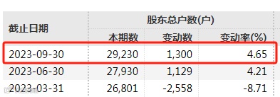 截至2023年9月末,ST贵人股东总户数为2.92万户。