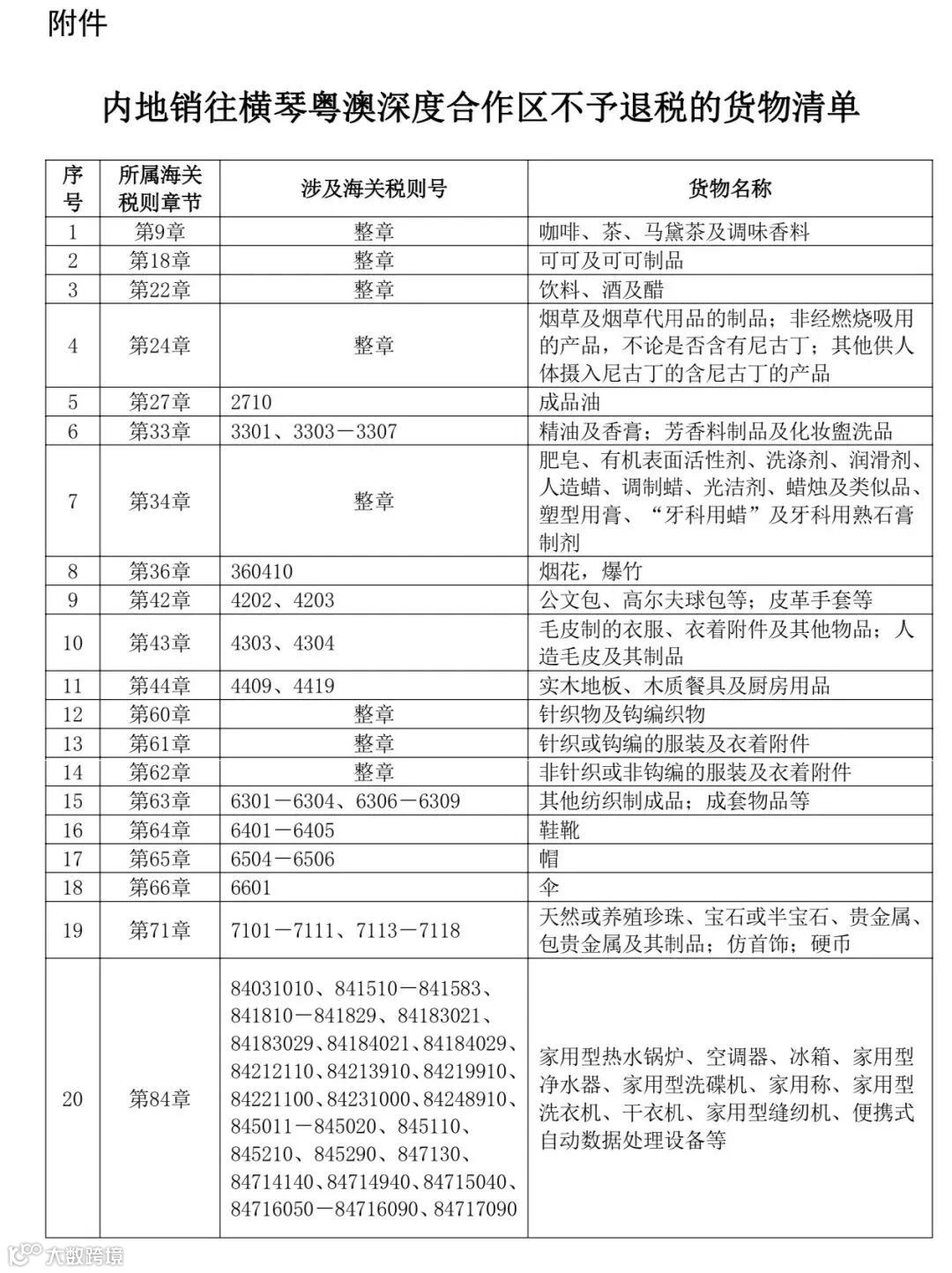 2.内地销往合作区不予退税的其他货物。具体范围见附件。