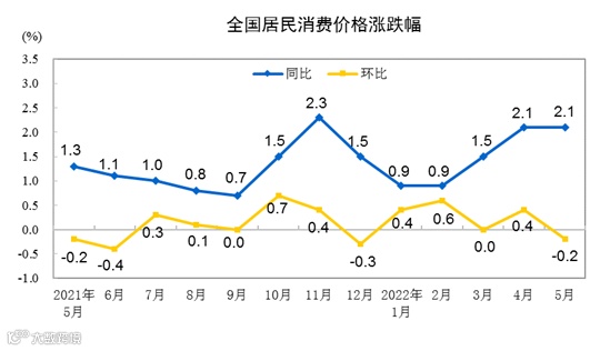 8、统计局最新公布!5月CPI同比上涨2.1%
