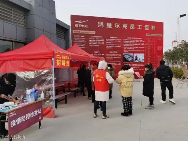 正月初九,睢县世纪大道与嵩山路交汇处的鸿星尔克(商丘)实业有限公司,大门口又热闹了起来,这里设置有鸿星尔克的招聘处。