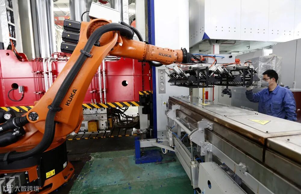 恒润集团有限公司工人在检查热塑性模压生产线机械手