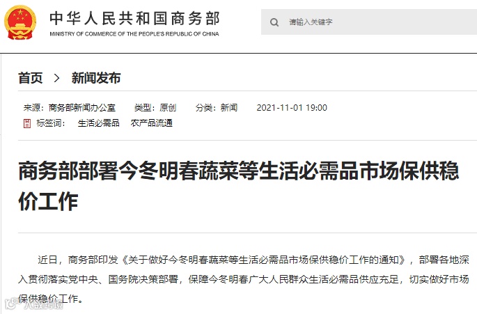 商务部鼓励家庭储存生活必需品