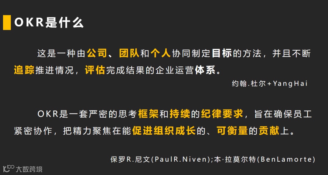 O=Objectives目标,是对驱动组织朝期望方向前进的定性追求的一种简洁描述。