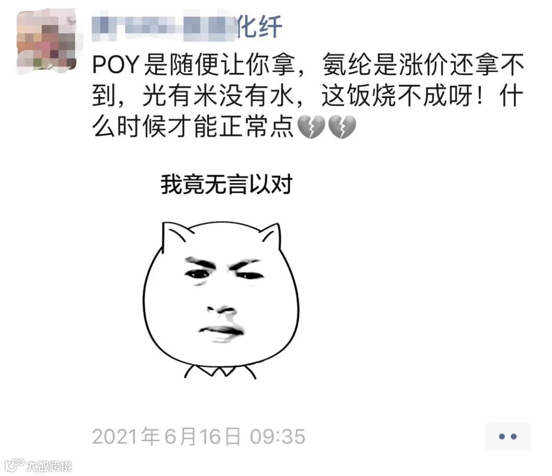 小编有个朋友,前几天在朋友圈吐槽,氨纶涨价还拿不到货,空有POY开不了工。去年长丝疯涨,今年轮到氨纶,真是风水轮流转,苍天饶过谁。
