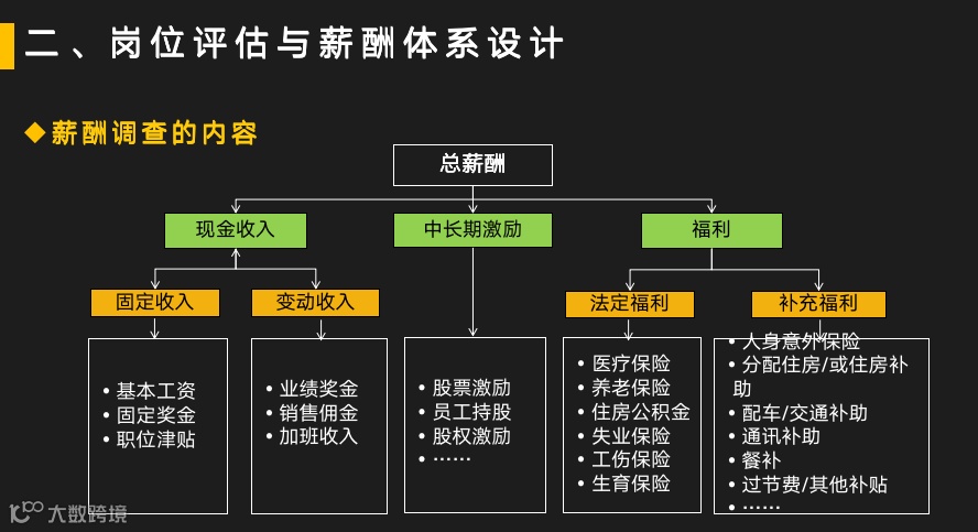 市场薪酬调查内外对比分析:①企业薪酬结构分析;②企业薪酬水平分析:税前现金收入、固定收入、变动收入。