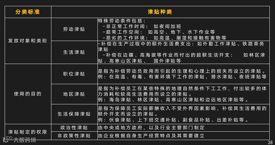 津贴的种类: