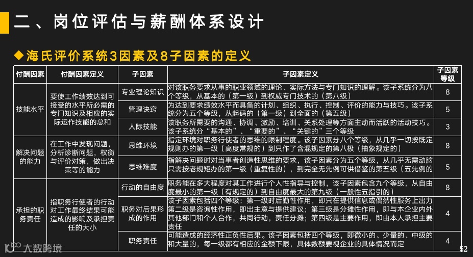 三大评估要素:A:技能水平;B:解决问题的能力;C:承担的职责任务。