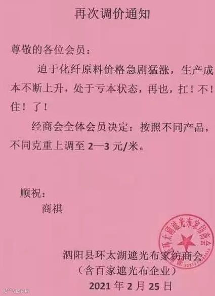 而下游的纺织厂处境如何呢?还没彻底从春节前后的 “暴涨”中缓过神来,新一轮印染费上涨潮已再度来袭,不少贸易企业更是手足无措。