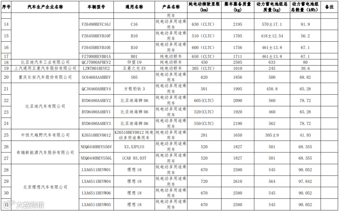 减免车辆购置税的新能源汽车车型目录(第十七批)纯电动汽车-乘用车车型如下: