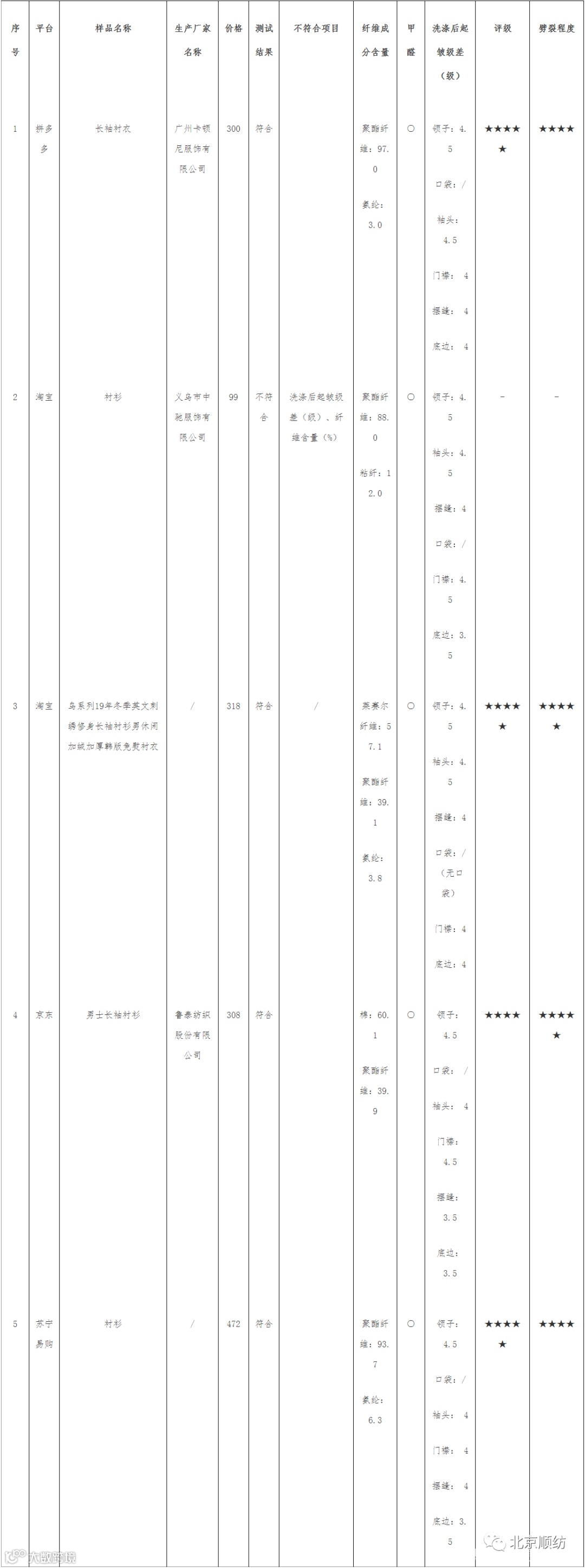 本次样品由宁波消保委工作人员以神秘买家身份从淘宝、京东、苏宁、拼多多、微店5个网络平台上购买。其中涉及保暖性服装14批、抗菌性服装12批、免熨性服装5批、吸湿速干性服装9批。样品的价格从每件35元到486元不等,且均为各平台中同类商品销量较高、平台推荐靠前的产品。