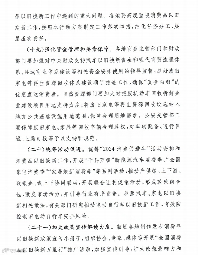商务部等14部门印发《推动消费品以旧换新行动方案》4月12日对外发布。要点梳理如下: