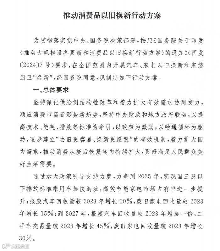 到2027年,报废汽车回收量较2023年增加一倍,二手车交易量较2023年增长45%,废旧家电回收量较2023年增长30%。