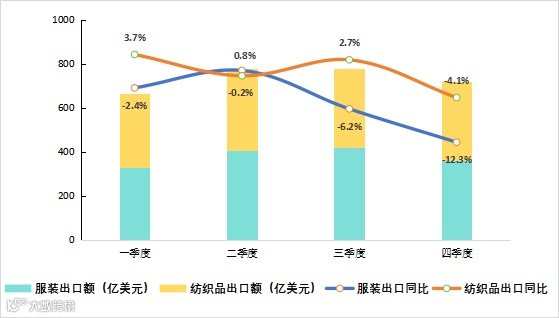 图2 2025年全国纺织品、服装出口季度统计