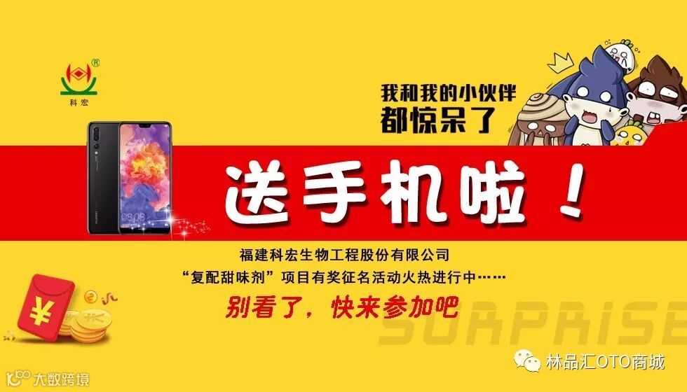 由“科宏复配甜味剂项目组”评选征集的产品名称,入围作品将于“林品汇OTO商城”微信公众号进行公示,并由相关工作人员将获奖奖品进行邮寄。