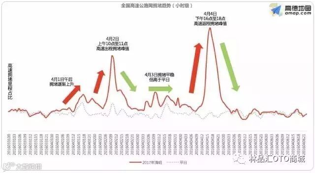 清明节假期间高速拥堵将从4月1日午后开始逐渐升高,4月2日上午高速出行需求逐渐增大,并且预计在上午10-11时左右达到峰值;小长假最后一天,也就是4月4日清明节当天祭扫出行的强度预计将达到最大,因此4月4日高速拥堵压力将达到最大,预计在下午16至18时拥堵达到第二个峰值,同时拥堵程度也将是整个清明小长假的最高峰。