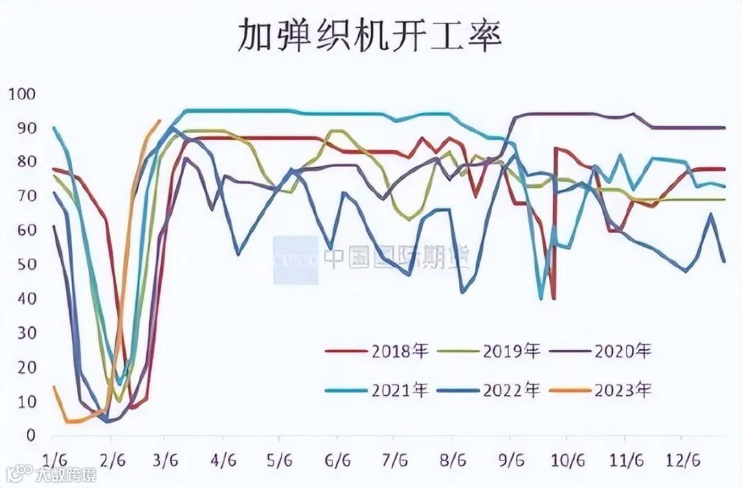 1、生意较好的下游企业在应季面料和贸易商囤货需求支撑下,目前产销平衡,所以开机上尽量高开。