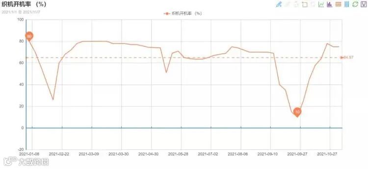 部分地区目前限电暂时取消了,本以为订单会正常一些,但是纺织老板们却言:“更少了!”虽然大部分企业能够满开,也有一些机器较多的厂家开7成以上,但本周盛泽地区织造开工率下滑至75%左右。