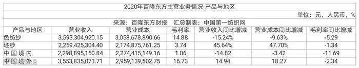 第一纺织网据公开资料获悉,作为中国棉纺织竞争力百强企业之一,百隆东方的主营业务为色纺纱的研发、生产和销售,年生产纱线20万吨以上,所属17家控股子公司遍布浙江、江苏、山东、深圳、香港、澳门等地,并在越南西宁省的大型生产基地,2020年,百隆东方旗下越南百隆一期、二期总产能100万纱锭已全部建成投产,占公司全部产能的60%。