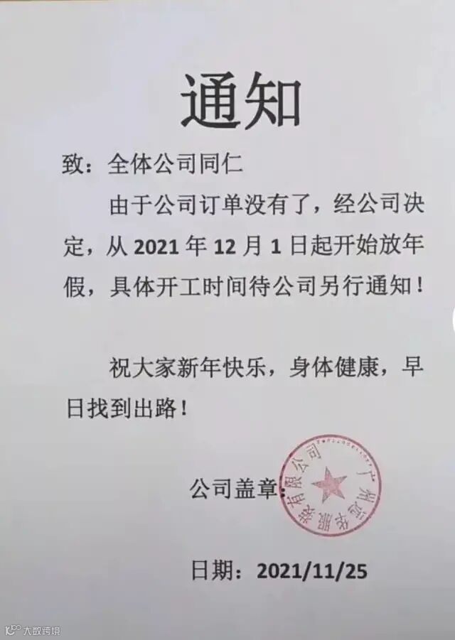 广东一服装厂家于昨日发布通知:放假!心酸词:公司订单没有了!