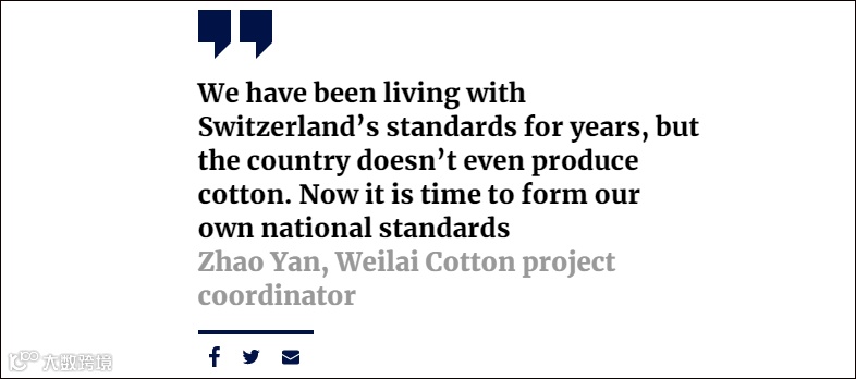 “多年来,我们一直活在瑞士(机构)标准的阴影之下,但这个国家甚至不生产棉花。现在是时候建立我们国家自己的标准了。”