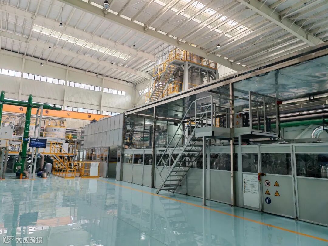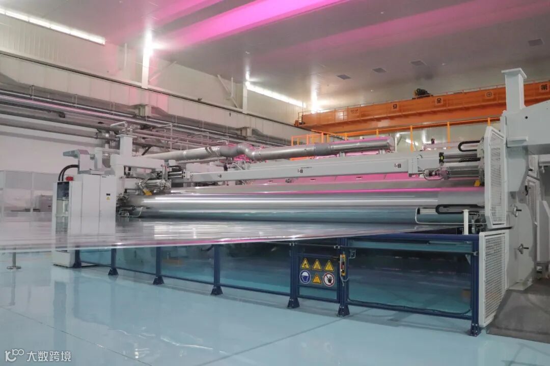 四川福融新材可观的产能来自这条德国布鲁克纳生产线。生产原料聚丙烯颗粒经制膜、收卷、分切等工序后成为乳白色的薄膜,再以600米/分钟的速度,汇集在8.7米长的硕大金属卷轴上,颇为壮观。未来数年内,这种全球单线产能效率最高、设备自动化水平最强、节能环保性能最优的生产线,将以每年投产一条的速度递增至4条。届时,出产自成都生产基地的高分子薄膜材料,将在福融新材全国超80万吨的年产能中占据重要比重。