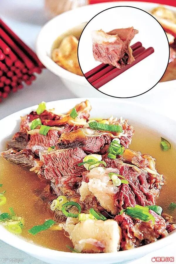 坑腩是牛肋骨之间的肉,肉味较香浓,连着牛骨软膏。