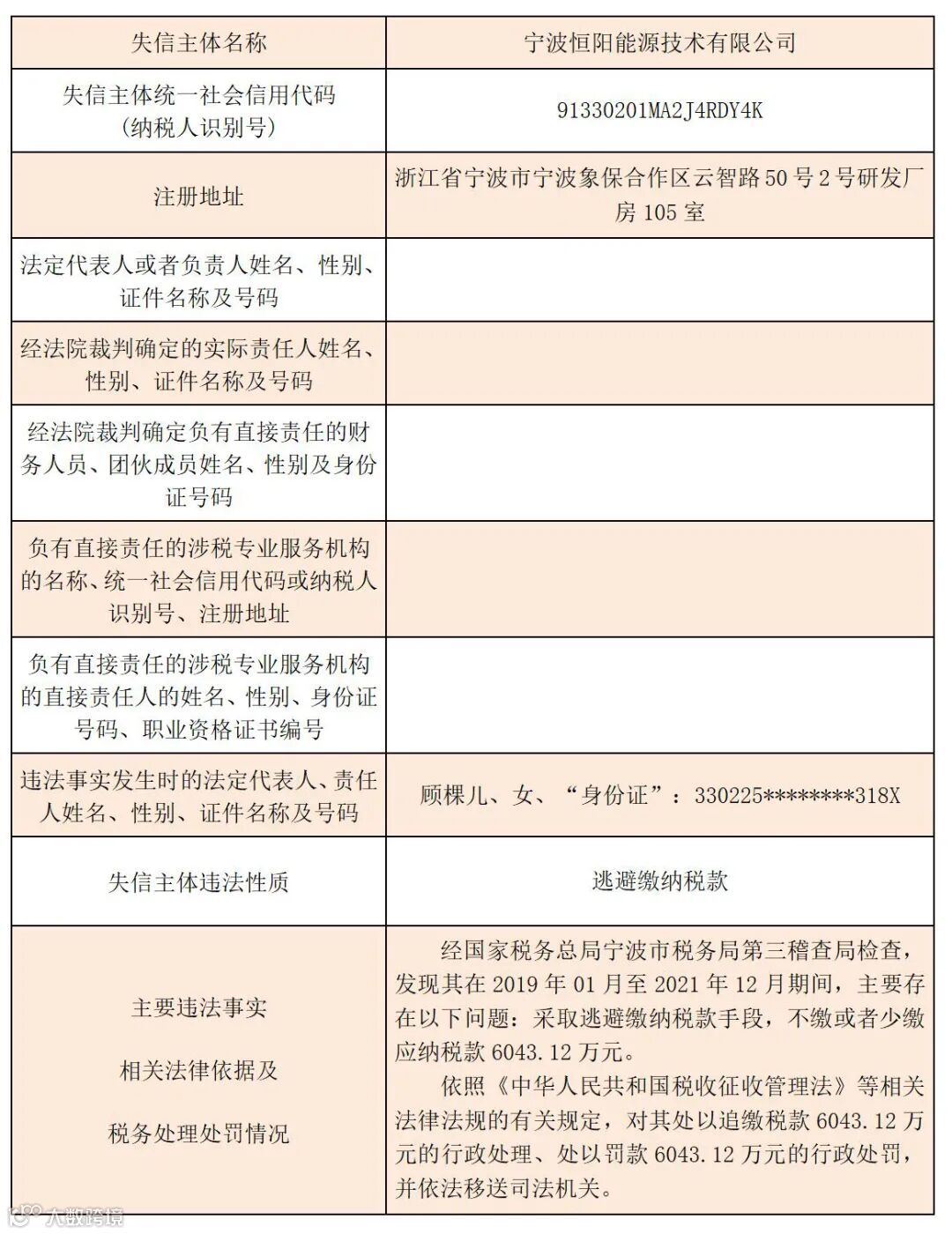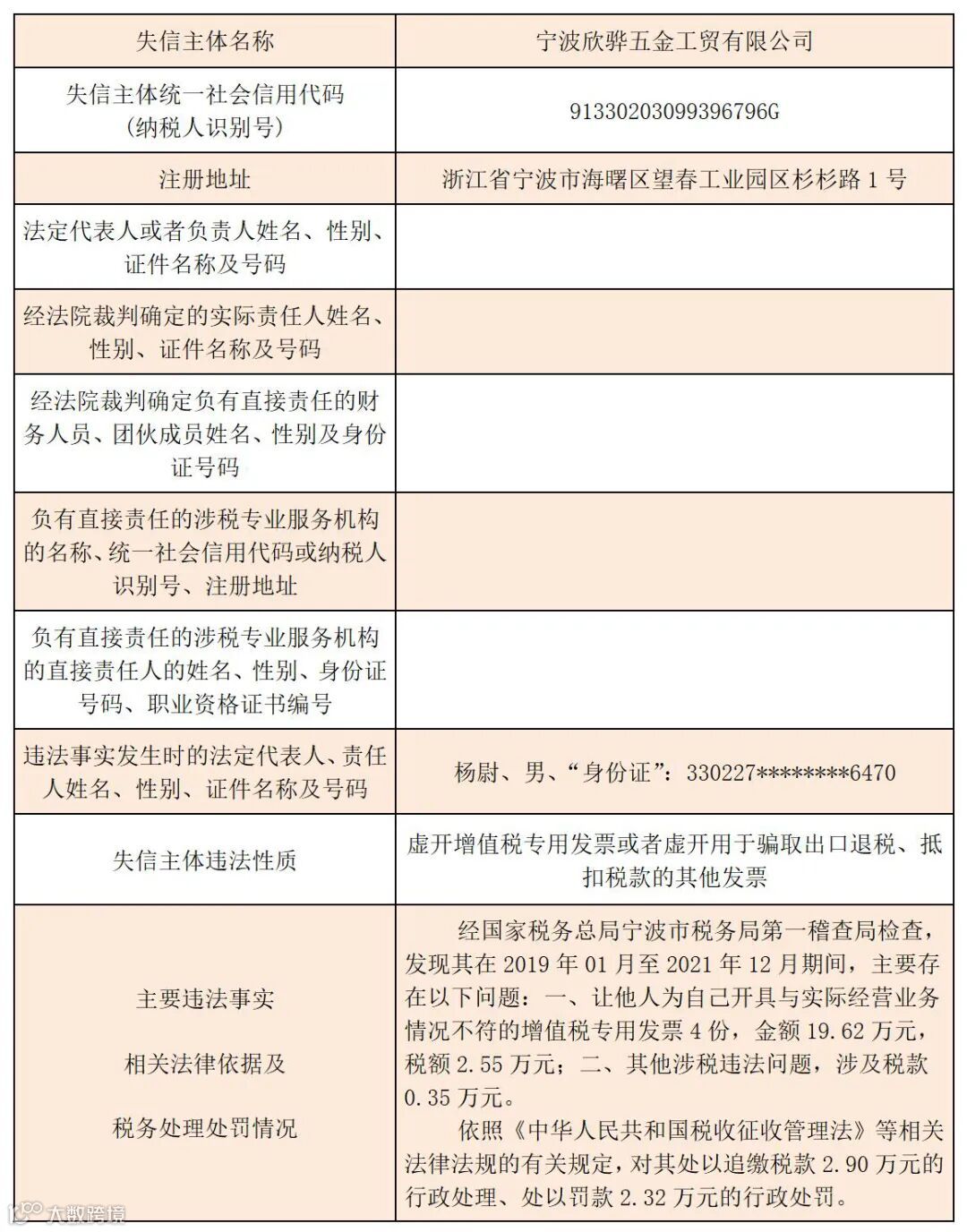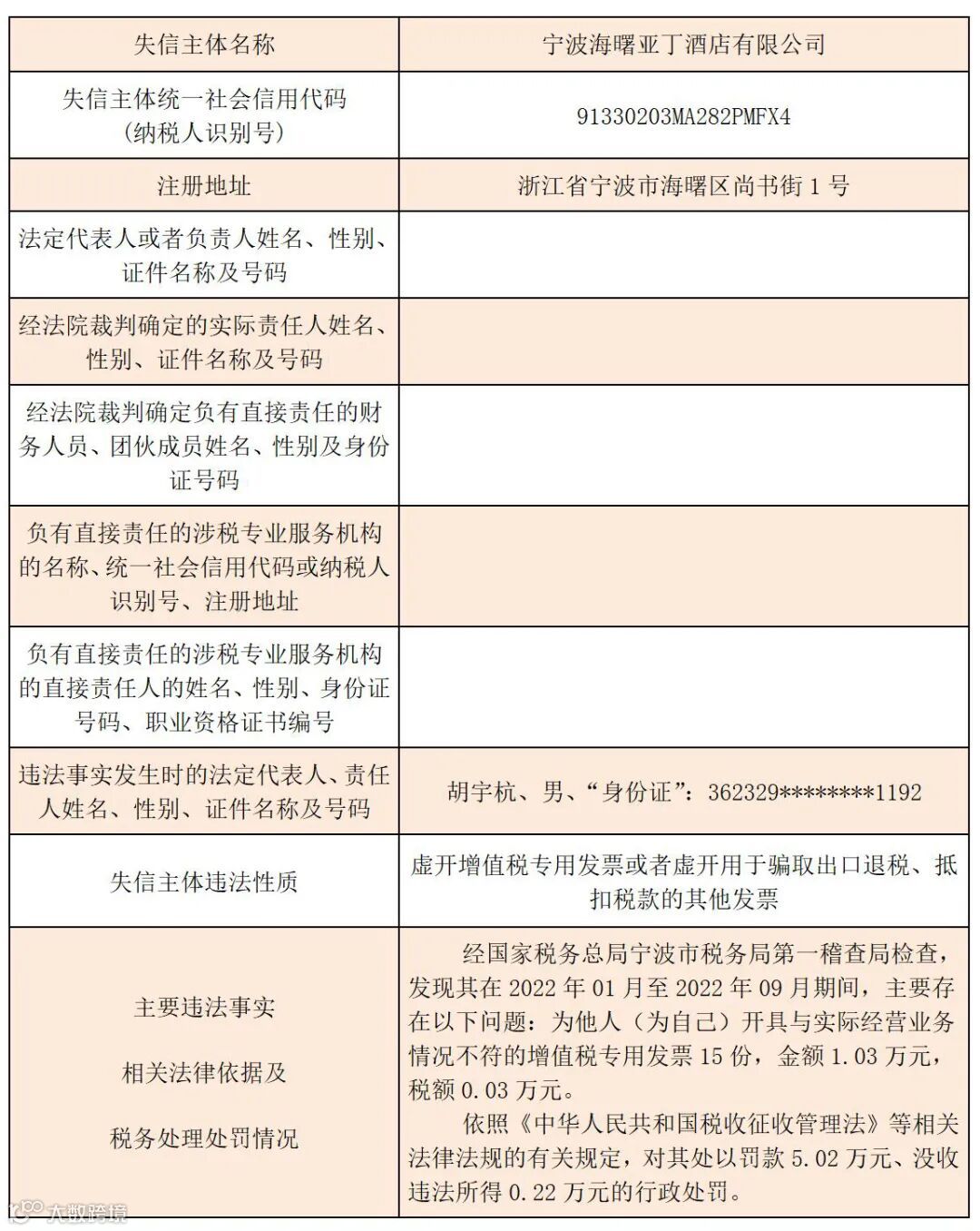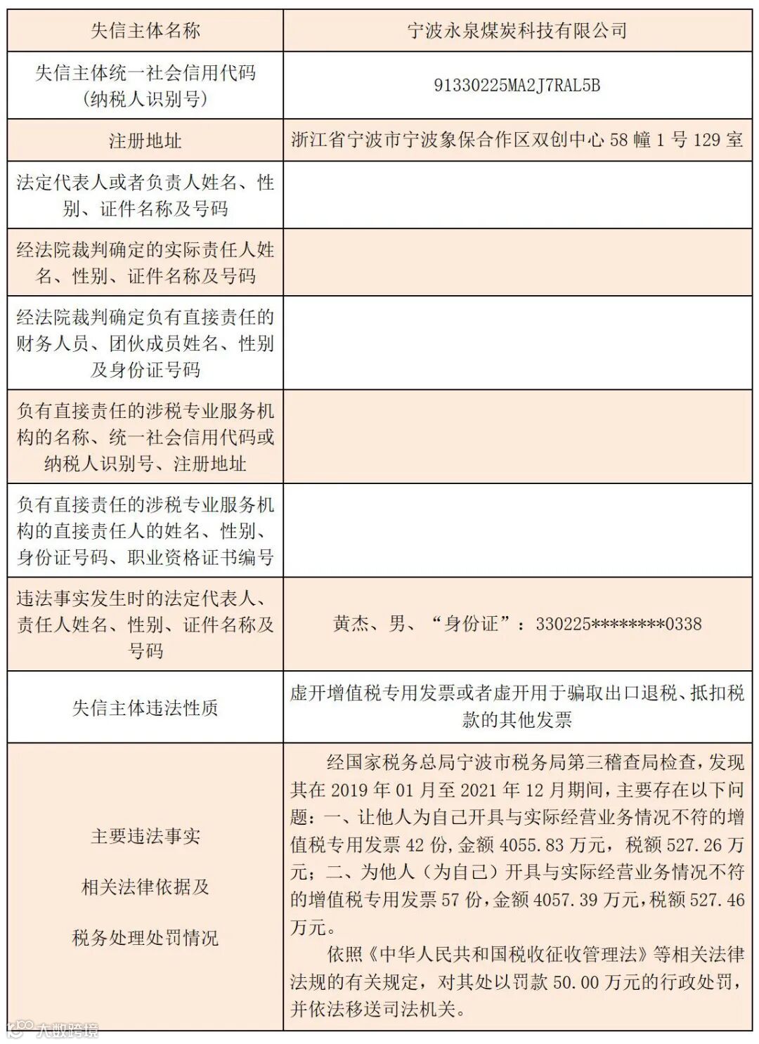 黑名单 | 2023年宁波税务税收违法“黑名单”(第七期)