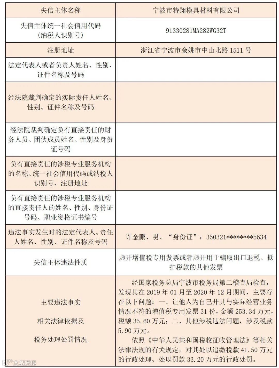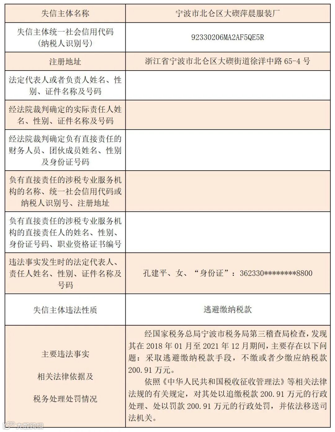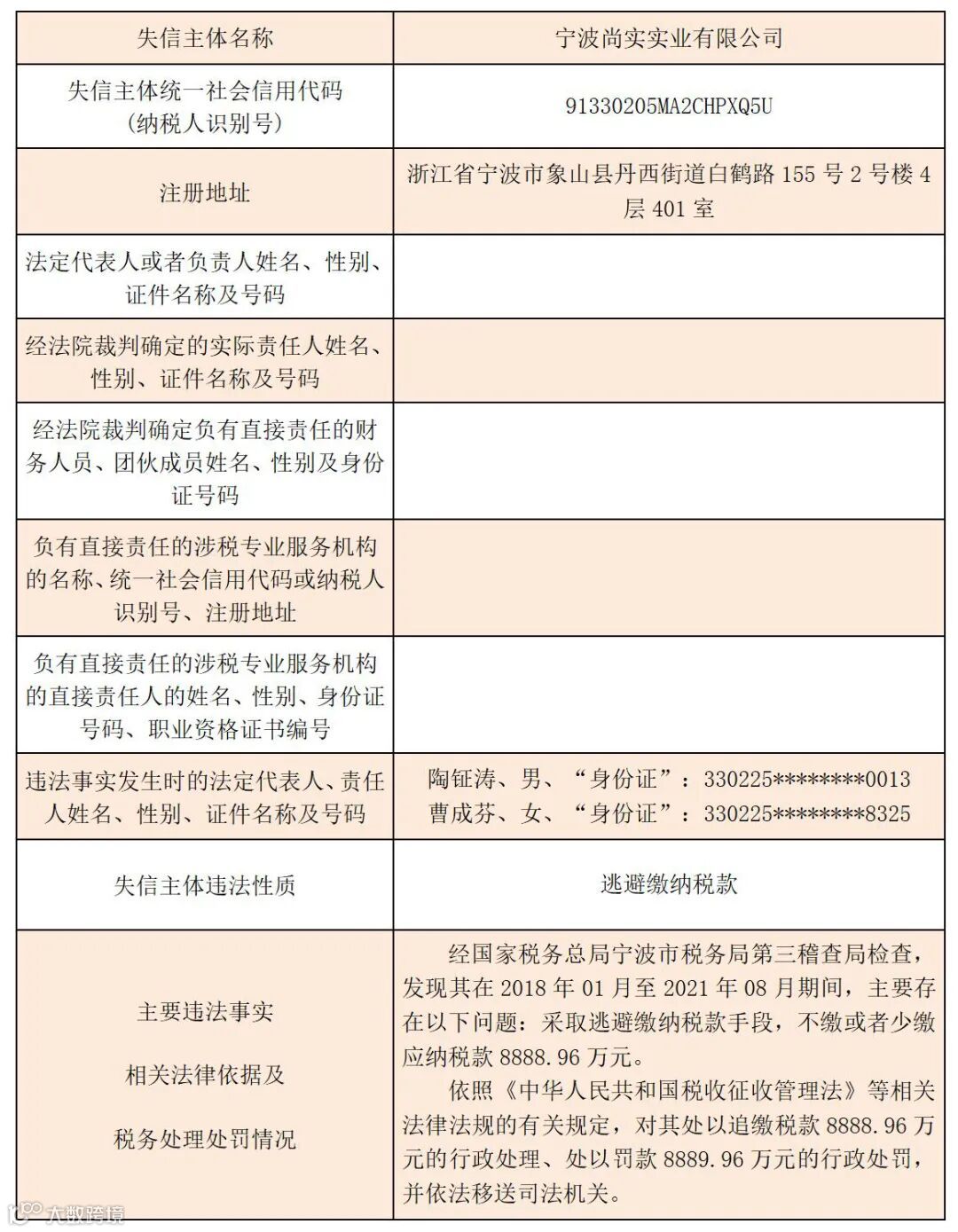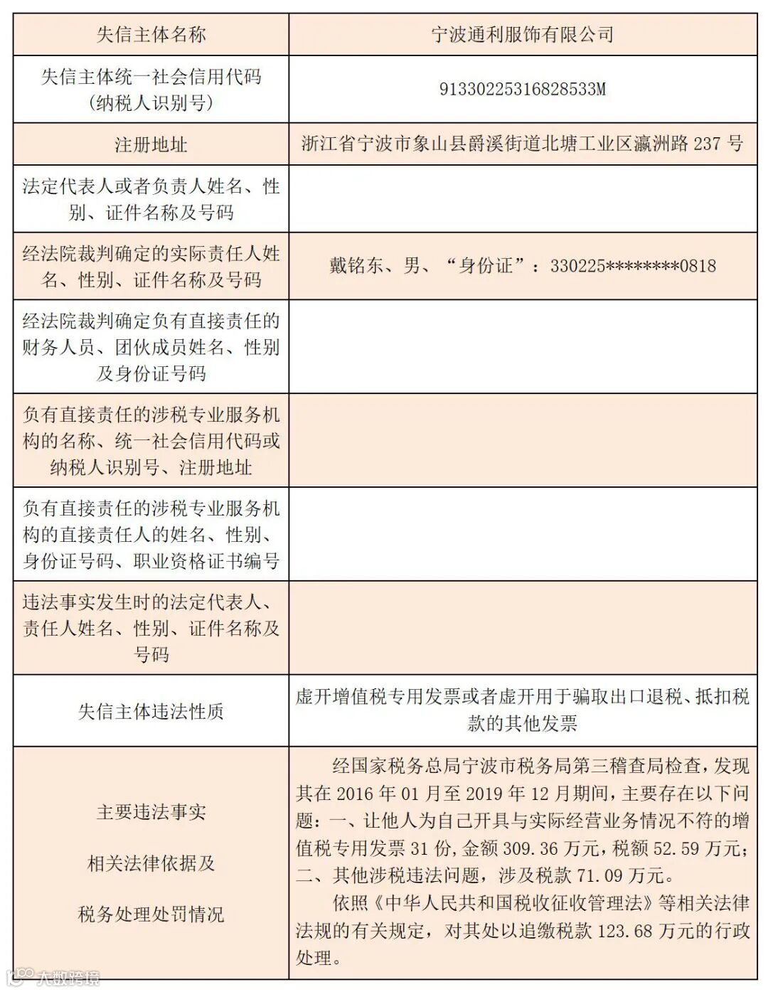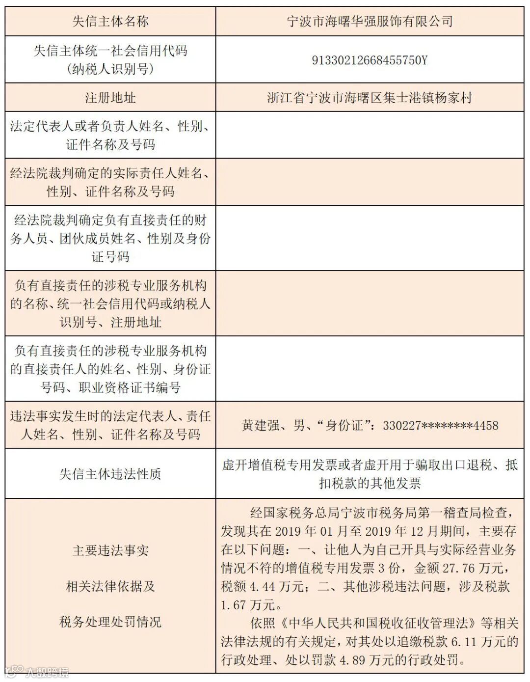 黑名单 | 2023年宁波税务税收违法“黑名单”(第七期)