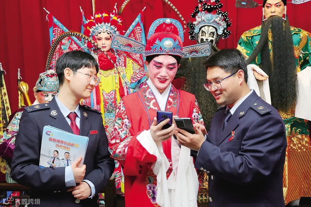 在有着“戏曲之乡”美誉的安徽省怀宁县,县黄梅戏剧团开展的“送戏进万村”演出活动这几天正在杨旗村热闹开演。“便民春风吹进门,税费政策送上门……”台上,剧团演员身着戏服,手拿税费政策解读宣传册,“变身”税收宣传员;台下,随着剧团演员的“吆喝助力”,怀宁县税务局干部也为观众准备了税费宣传单页,并在现场解答百姓关心的税费问题。
