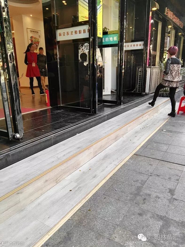 门口摆放多天经过雨淋日晒的极地地板展示、以及铺设在店门口台阶上让万人踩踏、也验证了水煮实验的超耐水耐泡和超耐磨的无穷魅力。