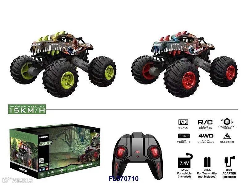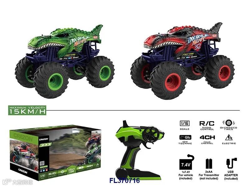 1:16 360度旋转遥控四驱动高速恐龙车
