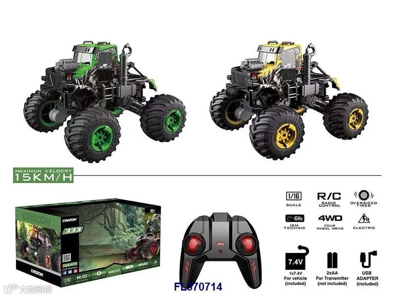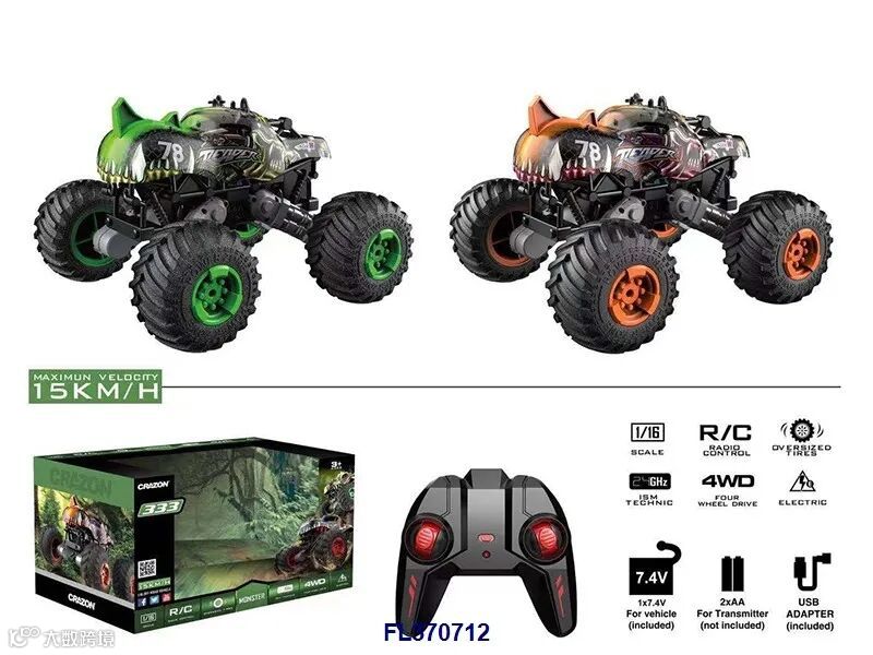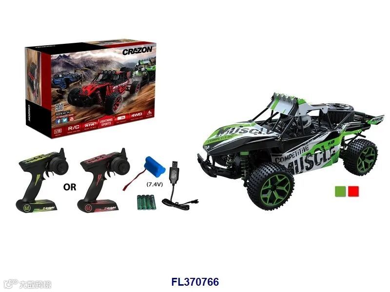 (绿色,包USB充电线+车身7.4V 1200毫安锂电池,遥控器用2x1.5V AAA电池无包,充电2小时可连续玩15分钟,遥控距离约25米)