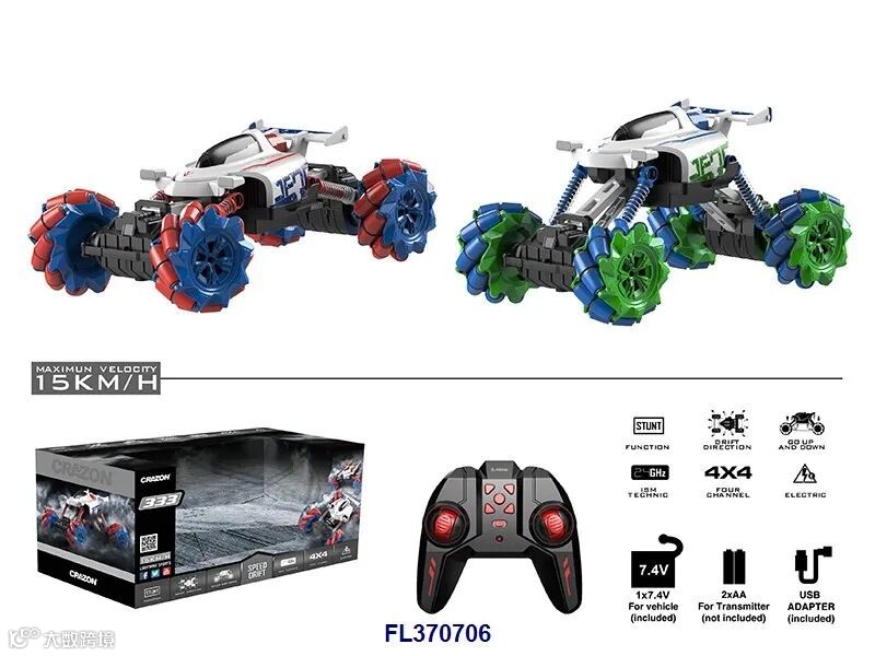 2.4G遥控360度旋转变形翻滚车