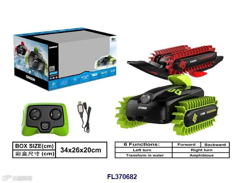 陆地360度旋转水中变形6通遥控水陆两用防水变形车(包USB充电线+车身7.4V 1200毫安电池,遥控器用2x1.5V AA电池无包,充电3.5小时可玩20分钟,遥控距离35米,绿/红2色)