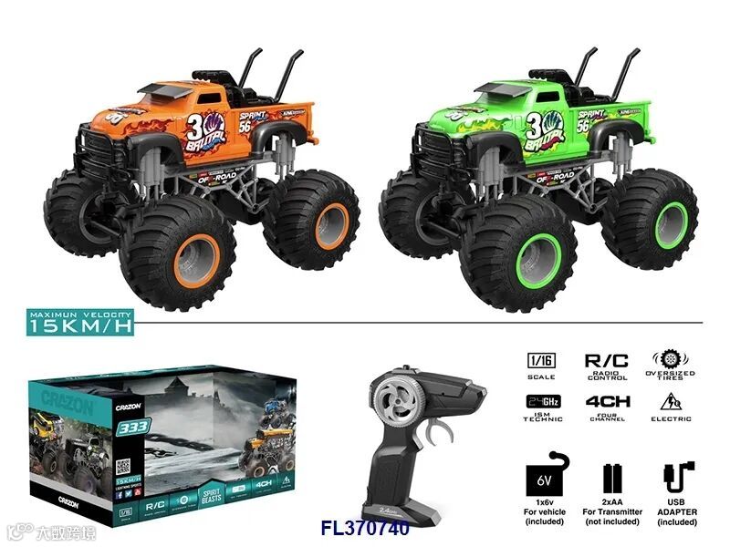 20KM/H 高速越野组合车包电配USB充电线/车身1*6V电池组/遥控器2*1.5VAA(遥控电池包装不配送),橙色,绿色