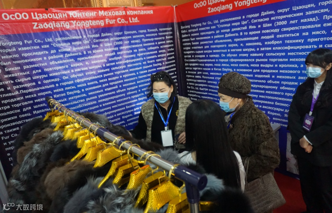 皮草采购商查看样品
