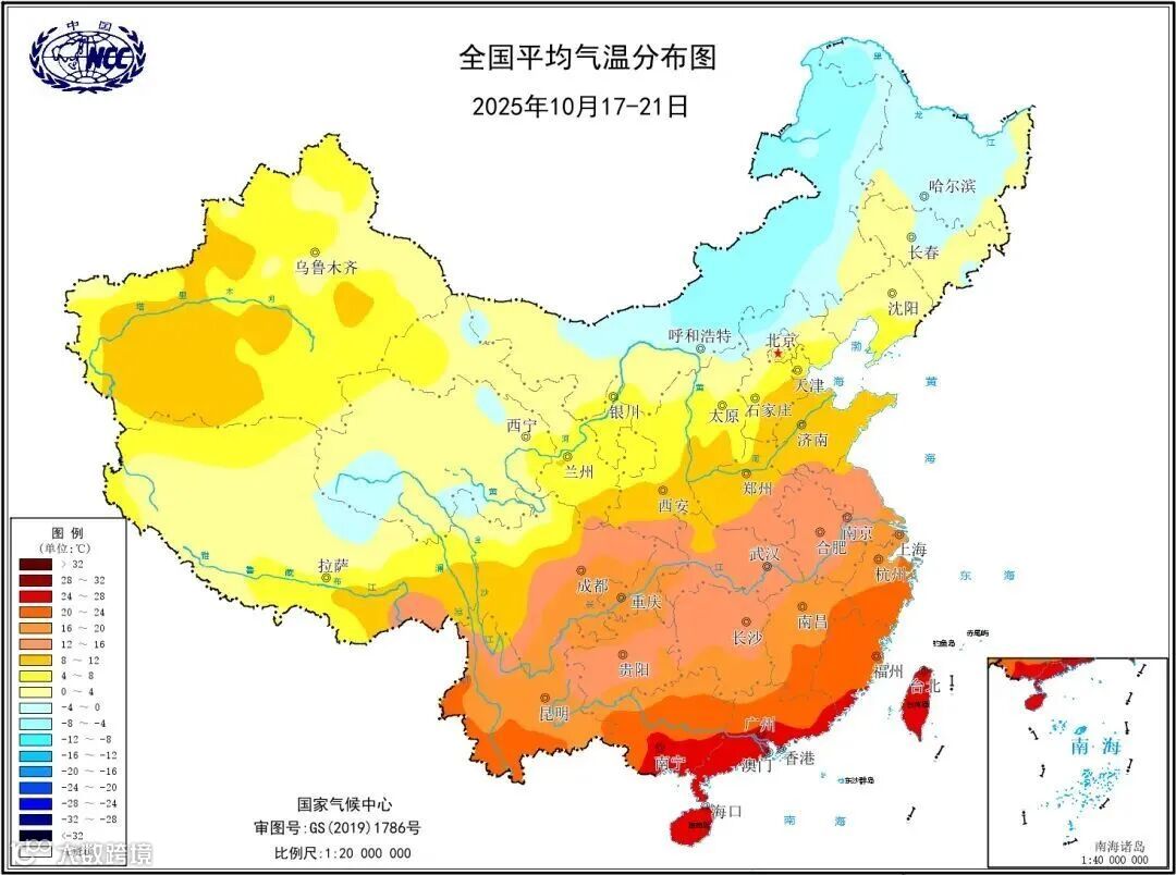 10月17日至21日全国平均气温分布图 图片来源:国家气候中心